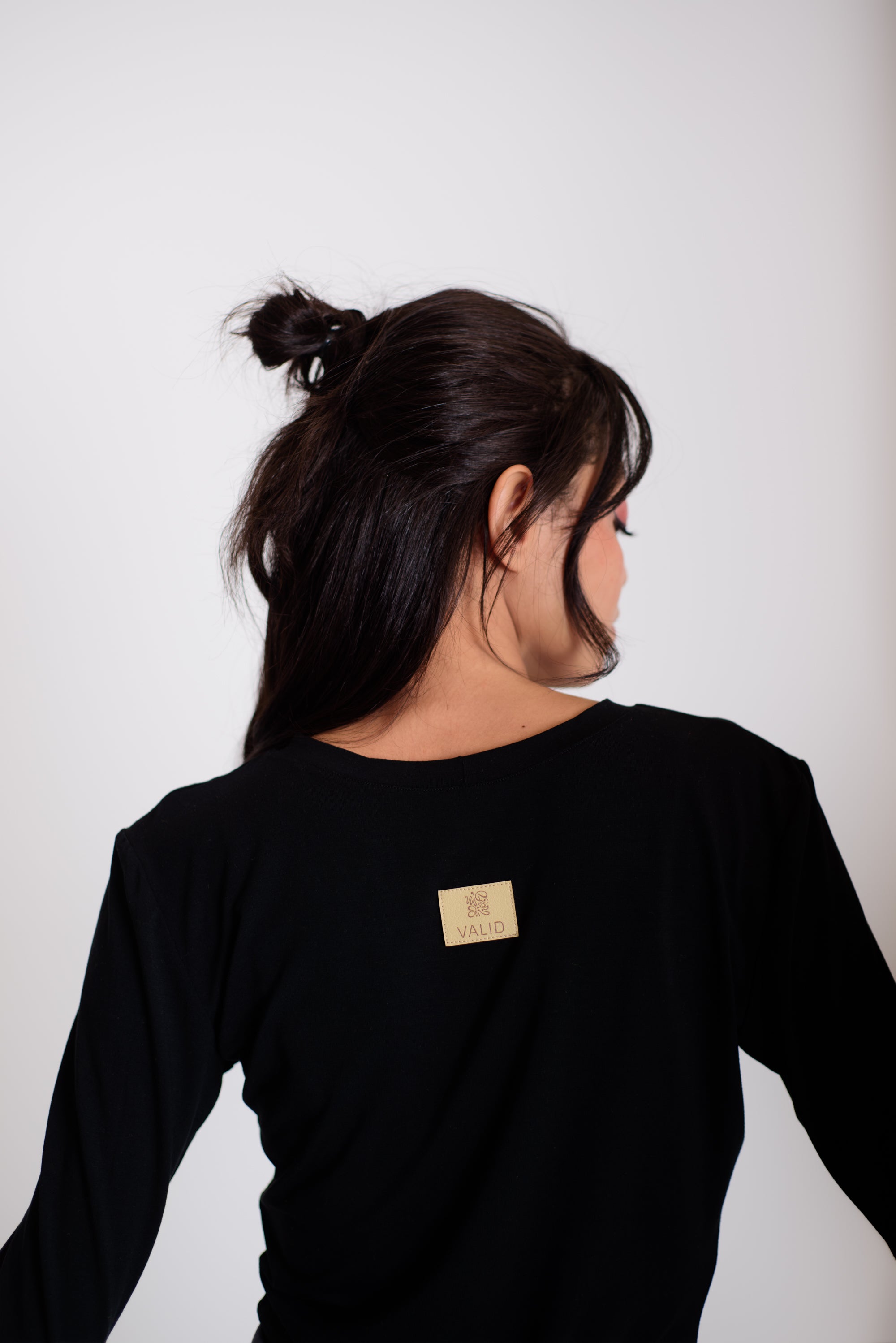 Kereknyakú hosszúujjú bambusz felső - fekete