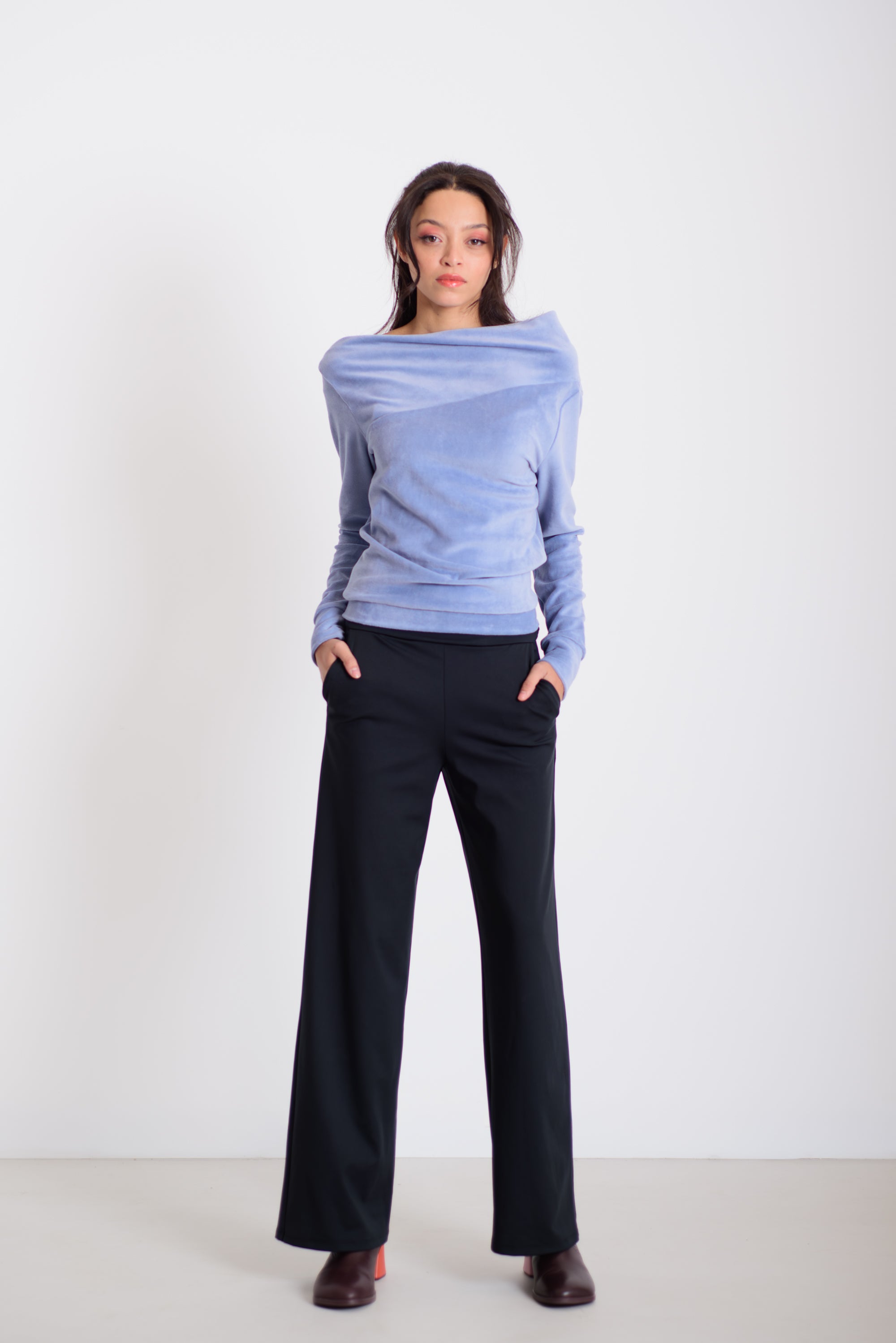 Csodálatosan kényelmes és puha pamut felső, igazán nőies lágy esésű aszimmetrikus nyakkal, izgalmas microlock eldolgozással. Bármelyik nadrágunkkal, de akár farmerrel is tökéletesen működik. Kényelmes anyaga, és laza, de nőies fazonja miatt évekig a ruhatárad alapdarabja lehet.