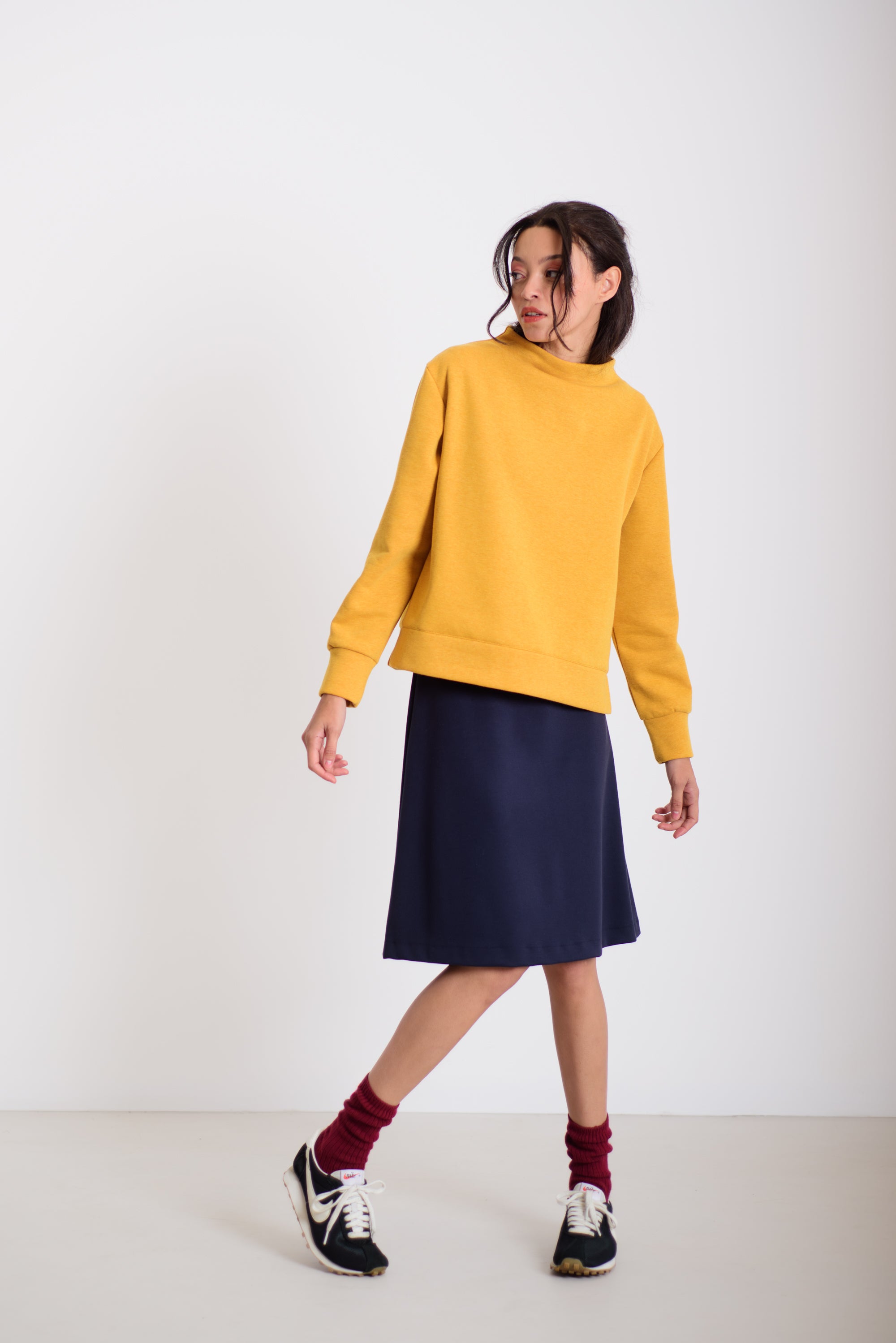 Visszahajtott nyakú pulcsi - okkersárga