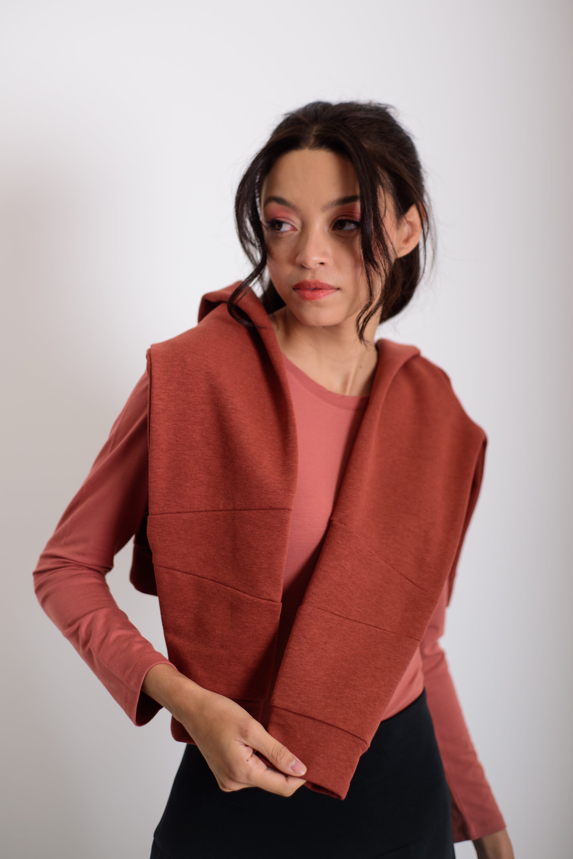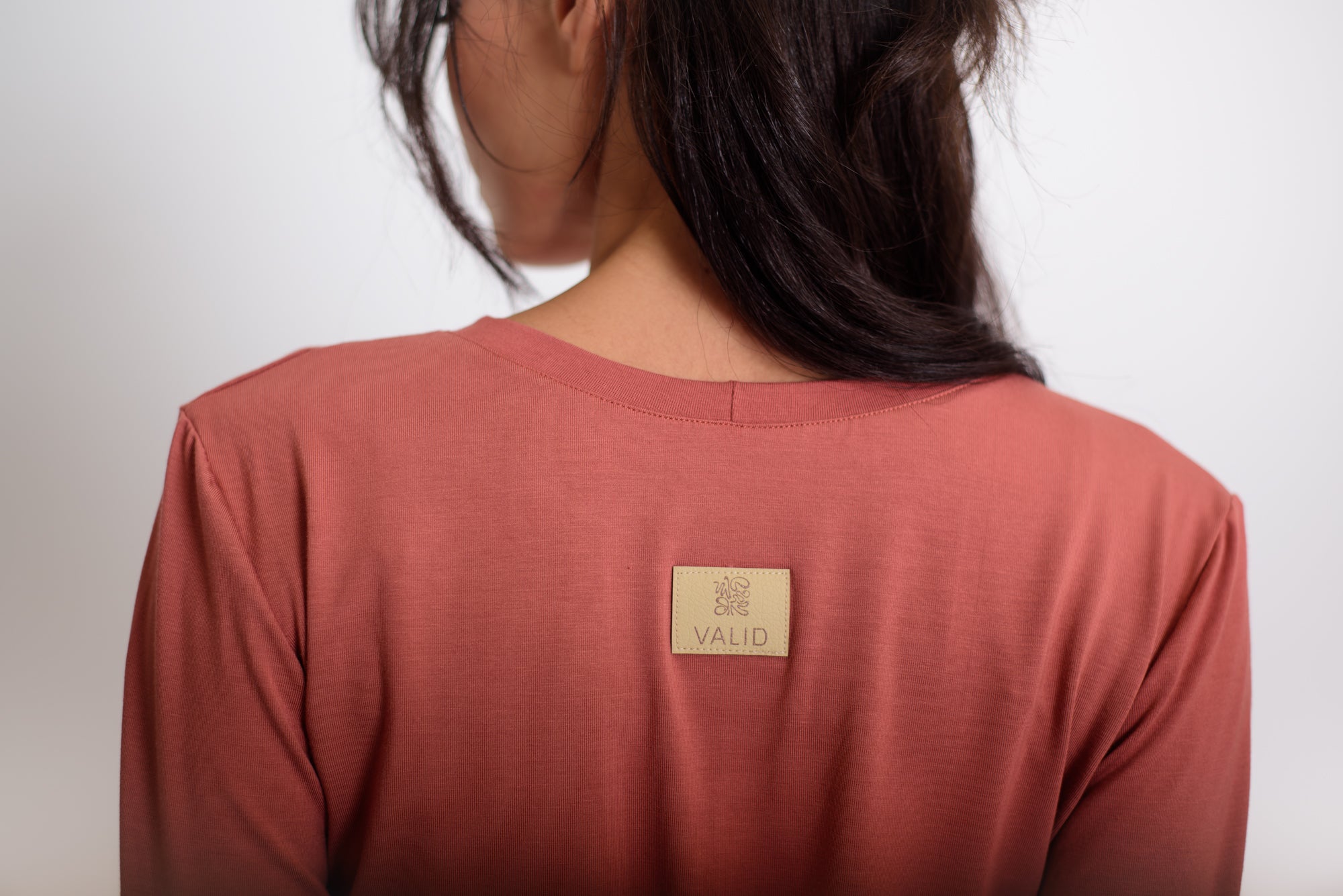 Kereknyakú hosszúujjú bambusz felső - terrakotta